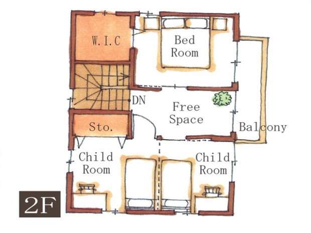 2階延床面積: 44m² (13.31坪)
