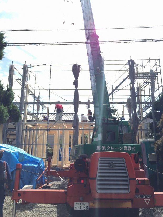 大田原市城山の新築住宅が上棟しました。雨で2回建て方を延期しての上棟です。雨で材料を濡らしたくないので延期延期しました。お客様には待って頂き感謝します。
