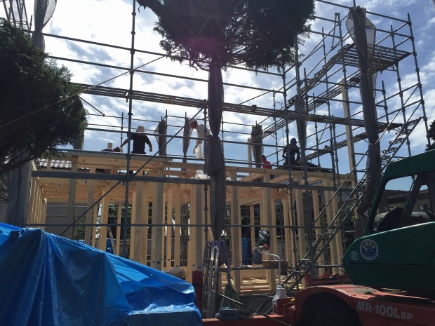 工期も大事ですが現場の安全と材料を濡らすと将来カビやシロアリの原因になりますので慌てず造っていきます!一生に一度の買い物です。将来失敗した~と思っても建て直すことは出来ませんよね。お客様のために全力で造って行きます!